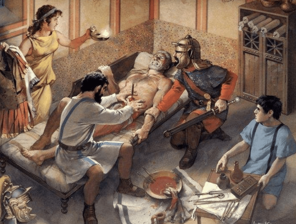 In Ancient societies, surgery was a rare practice, as there was a large uncertainty for life or death. It was often a fatal event. In order to perform these procedures, tools like a specula, bone lever, osteotomes, phlebotomist, probes, and bone drills were used. Anesthesia was also, obviously, not a viable option for Romans to use as a pain reliever during surgical procedures. Instead, opium and scopolamine were used. This early drug use is speculated to have been found at the bottom of Lakes where poppy seeds are found.